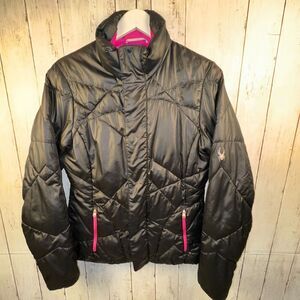 Spyder ThermaWeb Jacket Womens M Puffer Performance Full Zip Storm Flap Black