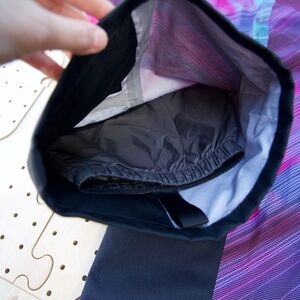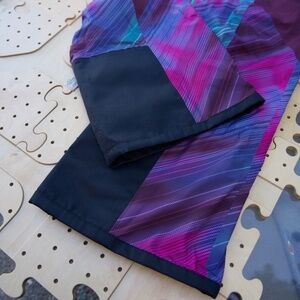 Perfect condition, new with tags attached. Adjustable at the waist with secure velcro. Teal/purple/pink/brown, reminds me of the northern lights.