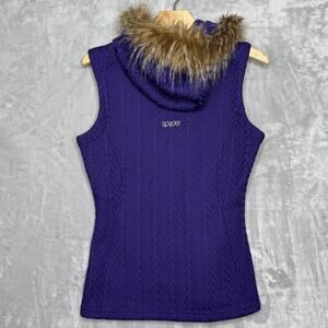 Spyder Vest Womens Medium Purple Core Sweater Faux Fur Hood Full Zip Pockets