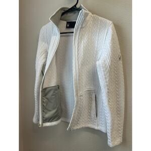 Spyder White Cream Cable Knit Full Zip Sweater Jacket Women’s Medium w/ Pockets