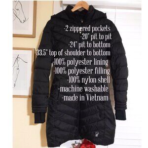 Spyder Women's Black Hooded Long Lightweight Puffer Jacket Streetwear sz Medium