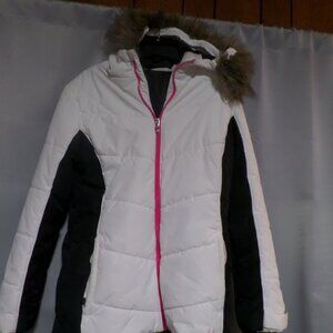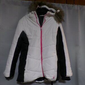 Spyder Women’s Wren Faus Fur Hooded Full Zip Jacket – White/Pink/Black Size Medi