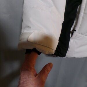 Inner knit gaiter cuffs with thumb holes, touch fasten cuffs.