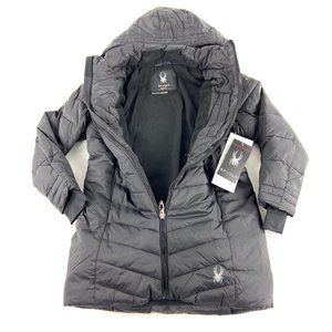 Spyder Youth Girl's Boundless Long Black Hooded Puffer Winter Jacket Size Medium