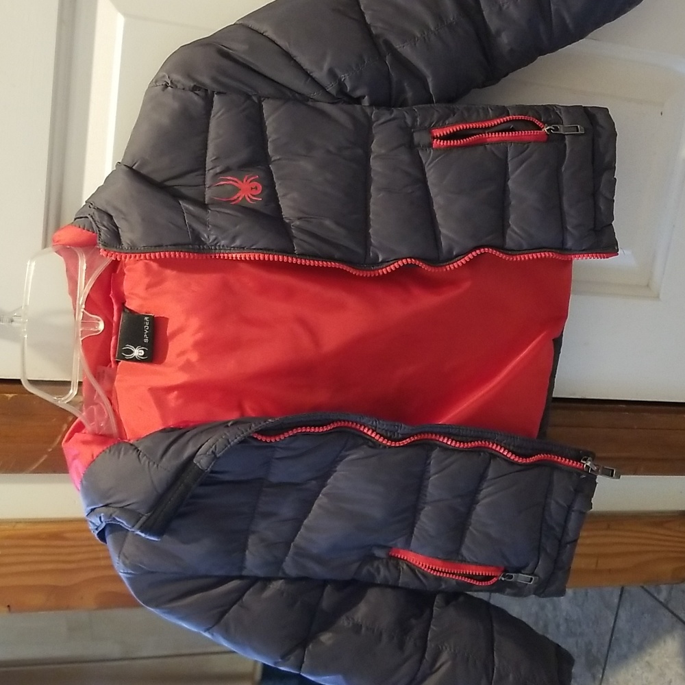 boys spyder jacket. size 4. gray and volcano colored. hood. In great condition.