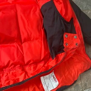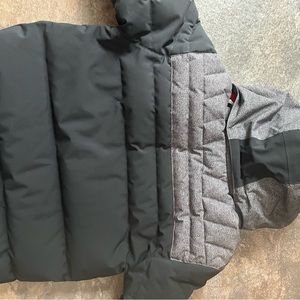 Spyder jacket, boys size 16, insulated puffer jacket, removable hood, snow skirt, lots of great pockets, excellent like new condition. Black, red and grey.