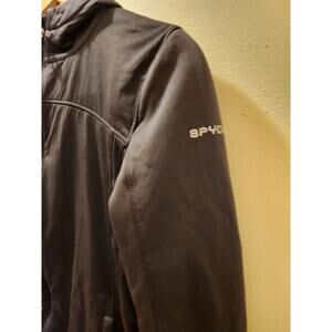 Jacket is like a thin synthetic down soft body with a shiny windbreaker type outer layer.