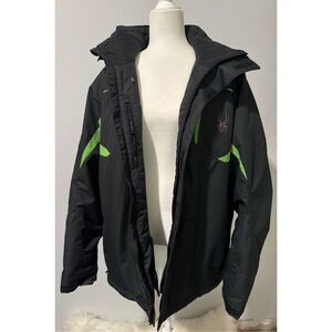 Spyder men’s winter jacket front zipper Velcro closure hooded jacket with pockets has bit peeling on inside no wear on the outside no rips or stains L