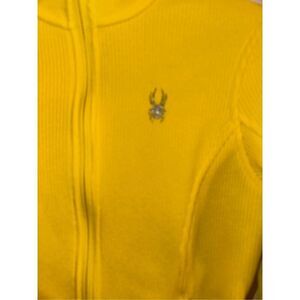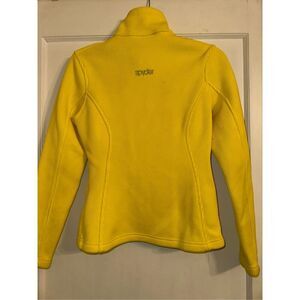 DETAILS: Spyder Core Sweater Jacket Womens S Yellow Full Zip Pockets Logo Mock Neck