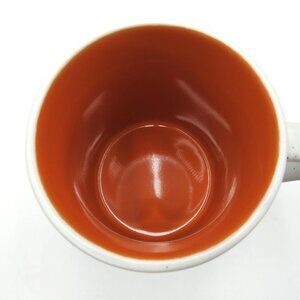 A playful ceramic mug featuring colorful witch designs and a vibrant orange interior. Ideal for sipping beverages during spooky seasons.