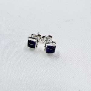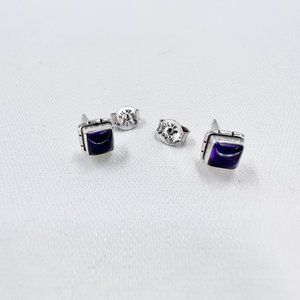 Square Amethyst Sterling Silver Post earrings. Stones read as Amethyst on gem tester, and earrings are .25” square. Earrings and earring backs are marked Silver 925. Earrings are previously loved and are in excellent condition.