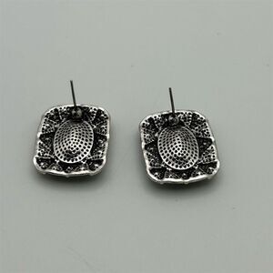 Square Art Deco Faux Black Hematite Rhinestone Stud Earrings Sparkle Fun
