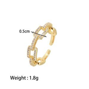 Square Buckle Link Chain Adjustable Ring With Zircon.