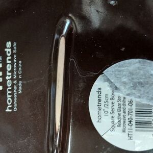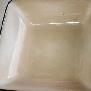 Elegant square ceramic bowl with a geometric design. Features cream interior and black exterior with multicolored accents.