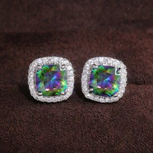 🌸 Square Colorful Micro Pave Zircon Stud Earrings for Women, EVGG1032