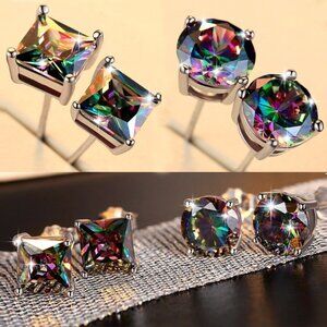 "Square Colorful Micro Pave Zircon Stud Earrings for Women, EVGG1035