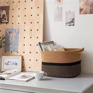🧿Stylish Design: The rectangle basket is designed with two-color rope pattern. The handles on both sides are designed with cute and cute ears. It is easy to carry and adds a stylish touch to your living space