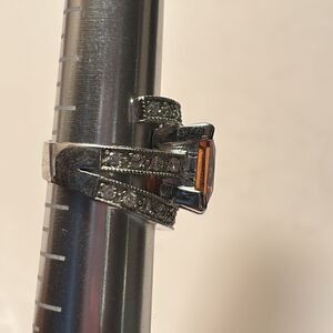 Square Cut Imperial Topaz 925 Silver Cocktail Ring with Twist white quartz