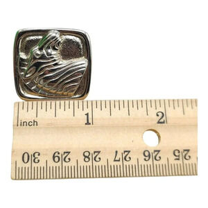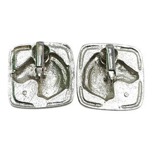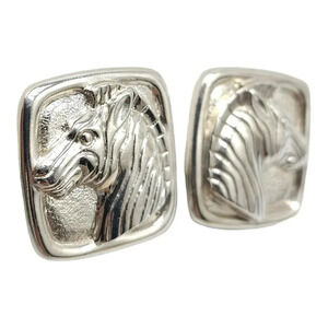 Square Engraved Zebra Head Studded Earrings Clip on Clasp Silver Tone Vintage