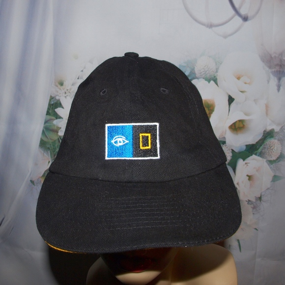 Eye Logo Hat Embroidered Baseball Cap Hat Vintage 90's Hat Low & Fast Shipping. Excellent Vintage condition from a collection looks unused and unworn. It is 100 Percent Cotton and 1 size fits most all with the Velcro Adjuster for a perfect fit every time. Not sure what the logo is for if you know let me know since I could not find it anywhere. Why pay full or collectors prices when you can buy from us for less it's the Fairy Way :)