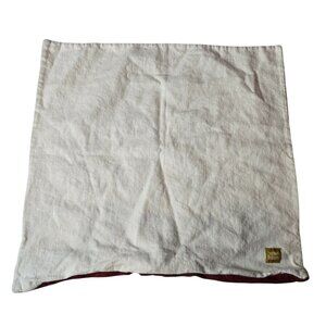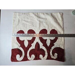 Square Feathers Linen Pillow Cover With Red & White Ornamental Design 20x20