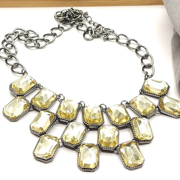 Square Gem Statement Bib Necklace