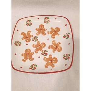 Sleigh Bell Square Gingerbread man 7.25" Cookie Platter80s Christmas Plate Ivory