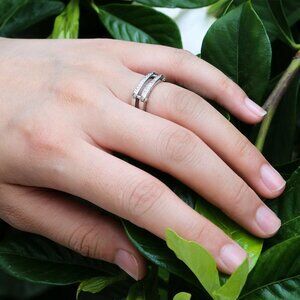 Square Glitter Zircon Double Layer Silver Plated Ring for Men, L187