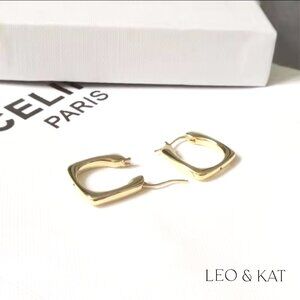 Square Huggie Earrings in Gold and Silver. 925 Sterling Silver. #1060