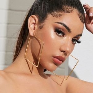 Square Large Hoops Gold Tone Earrings