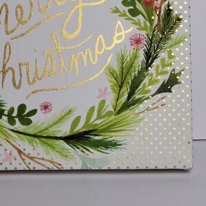 Measuring 12x12 inches, this sign features a delightful watercolor design of a poinsettia wreath, complete with pretty pink flowers and lush evergreen accents. The crisp white background is adorned with shimmering gold polka dots, adding a touch of sparkle to your holiday decor.