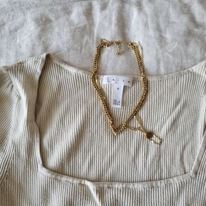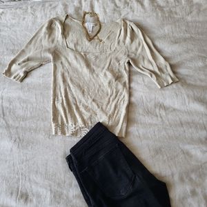 Cream square neck blouse. Sleeves go to elbow. Material is stretch so size is M/L.
