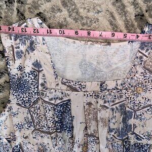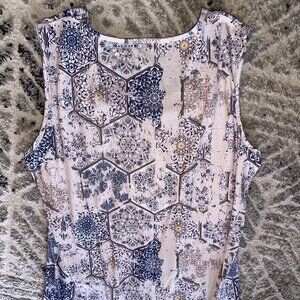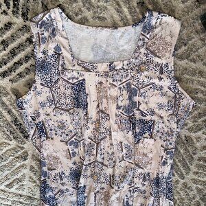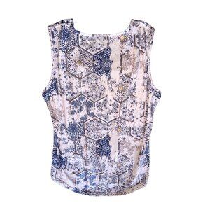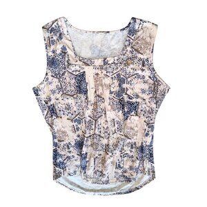 Square Neck Geometric Blue Cream Women Tank Top Shirt XL