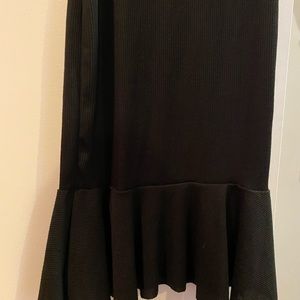 This dress features a fitted, mini silhouette, square neckline, spaghetti straps, and ruffle hem.