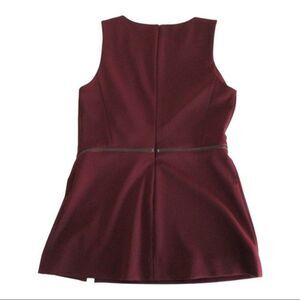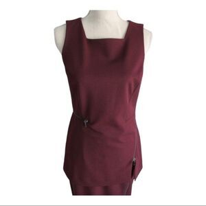 Zippers partially circle the waist and up one side of the sleek fitted modern top. The sleeveless style is tailored from stretch gabardine twill fabric. Hidden back-zip closure. Square neck. Sleeveless. 95% polyester, 5% spandex. Machine wash cold, line dry. Please view photos for full description and measurements to confirm fit. Seller is not responsible for brand sizing or fit. Excellent Preowned Condition Size Small