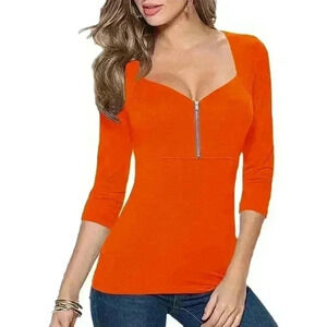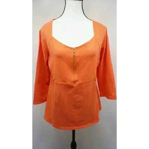 Square Neck Zip Up Front Empire Waist Blouse Tees Tops, Size XL