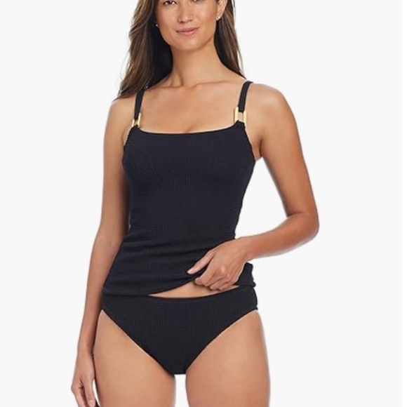 Square Neck by Bleu Rod Neck Tankini Swimsuit Top Black Size, 12 8193