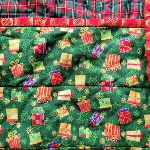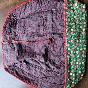 Square Quilted Christmas Tree Skirt Collar Gift Print Plaid Hand Made 24"