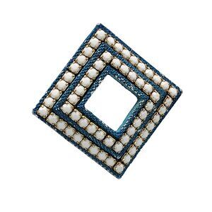 Add a touch of elegance to your outfit with this vintage square brooch, featuring shimmering rhinestones set in gold detailing. Its eye-catching blue enamel finish offers a distinctive flair, making it a statement accessory for those who appreciate vintage charm and sophisticated style.
