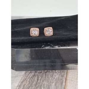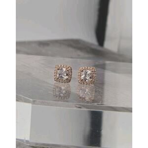Square Rose Gold Plated Sterling Silver CZ Post Stud Earrings 7MM