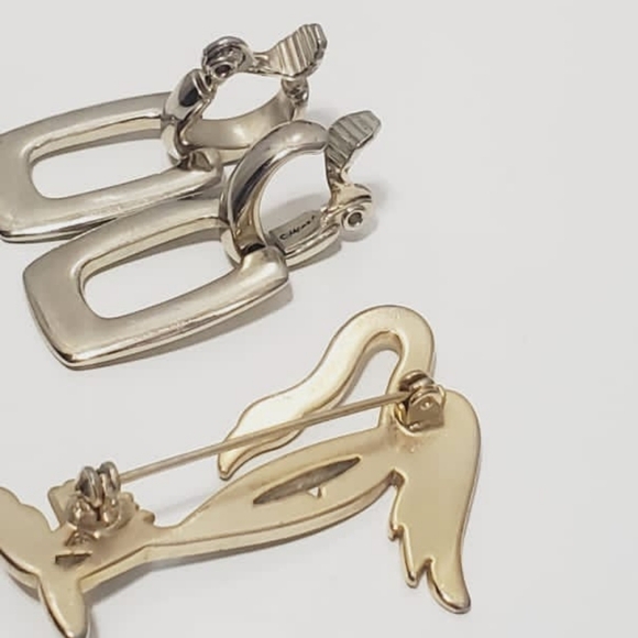 Square Shaped Gold Tone Shiny Clip On Dangle Drop EarringsbirdShaped Pin Brooc🌴
