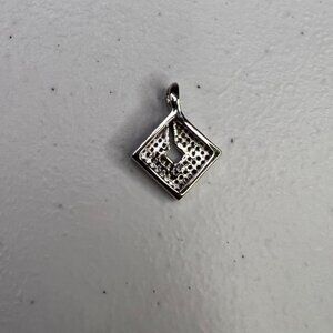 Square Shaped Silver Tone Cubic Zirconia Pendant Women's Jewelry