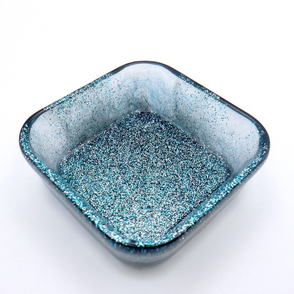 This square shaped trinket dish can be used to store small items, such as jewelry, candy, coin, keys, etc. I used epoxy resin to create this handmade item.