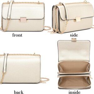 The crossbody evening bag are paneled with gold chain and high quality leather. Non removable to strengthen the bearing capacity.