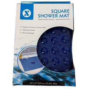 Square Shower Mat 21"x21" Grippy Textured Surface Strong Suction Cups Non-Slip