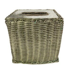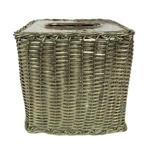 This square tissue box holder combines style and functionality with its silver basketweave design and hammered chrome finish, adding a modern touch to any bathroom decor.