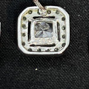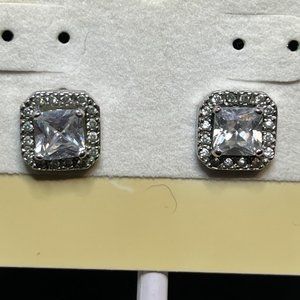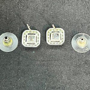 Square Silver Tone CZ Pierced Earrings Signed IBB CN (3778)
