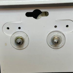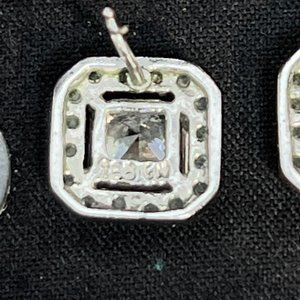 Square Silver Tone CZ Pierced Earrings. They are signed IBB CN for International Bullion Brokers China.