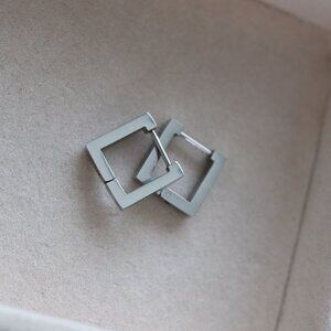 Square Style Huggie Hoop Earrings Silver Stainless Steel
