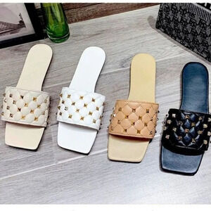 Square Toe Black Quilted Studded Summer Sandals Size 8.5